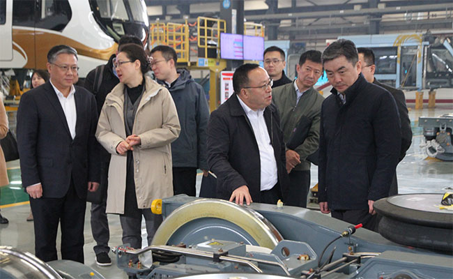2024年3月4日下午,全國社會保障基金理事會副理事長武建力一行蒞臨新筑股份,實地考察了新筑股份城軌交通高端裝備制造產業(yè)基地和磁浮綜合試驗基地,試乘體驗了新筑股份三編組磁浮列車并座談交流。四川發(fā)展(控股)公司黨委副書記、副董事長、總經理郭勇,新津區(qū)委書記熊艷,新筑股份黨委書記、董事長肖光輝等陪同調研。