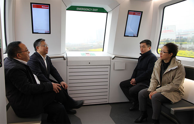 隨后,武建力副理事長一行來到磁浮綜合試驗基地,先后參觀了3.6km磁浮綜合試驗線、磁浮運控中心,試乘體驗了三編組磁浮列車,聽取了公司黨委委員、川發(fā)磁浮董事長唐林同志關于內嵌式中低速磁浮交通系統(tǒng)技術的主要特點及優(yōu)勢,技術引進、消化吸收及國產化相關工作情況的專題匯報。
