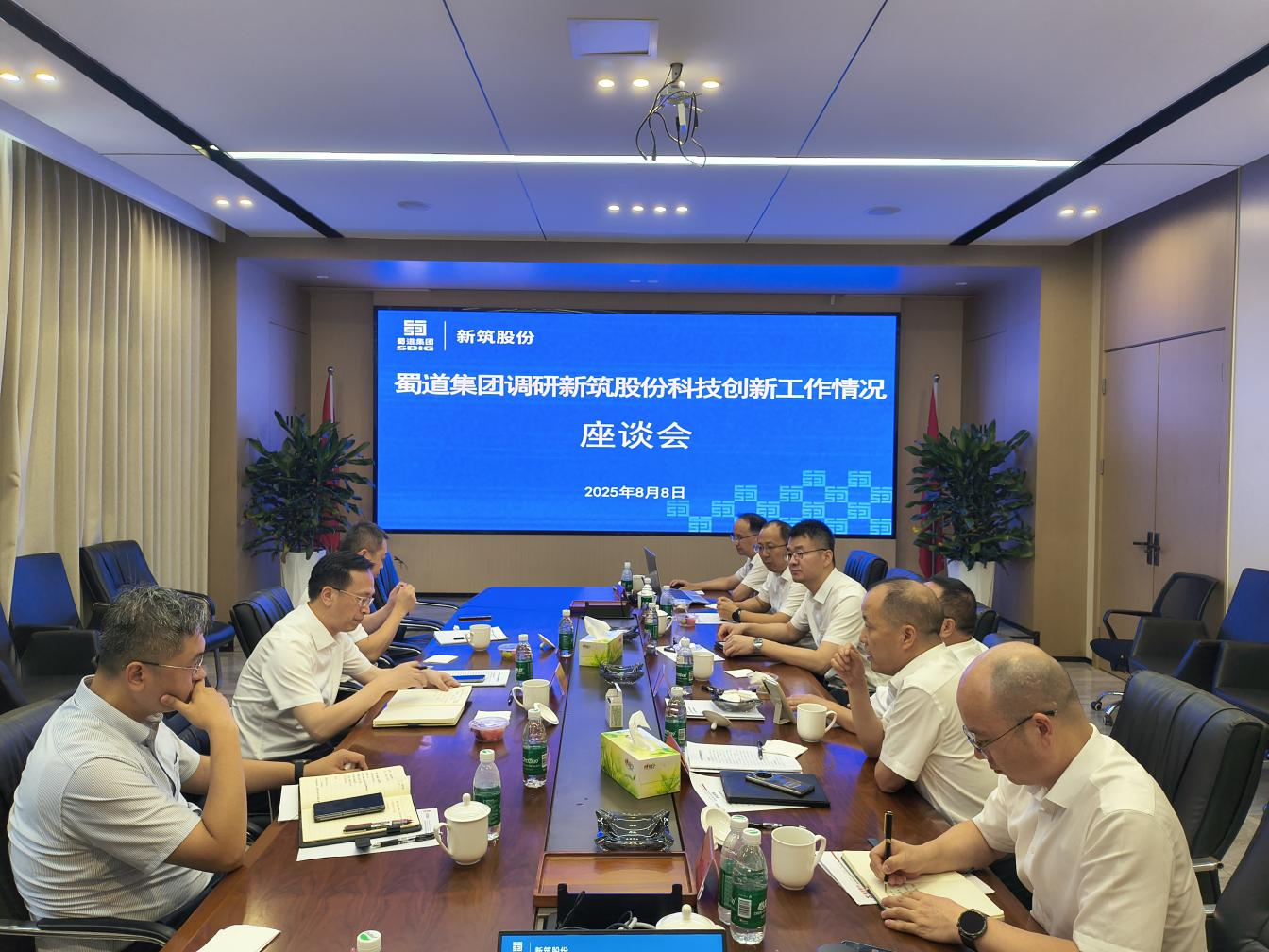 2025年8月8日上午,蜀道集團總工程師黃兵一行蒞臨新筑股份,就公司科技創新工作情況進行了深入調研。新筑股份黨委書記、董事長肖光輝,黨委副書記、董事、總經理夏玉龍等陪同調研。