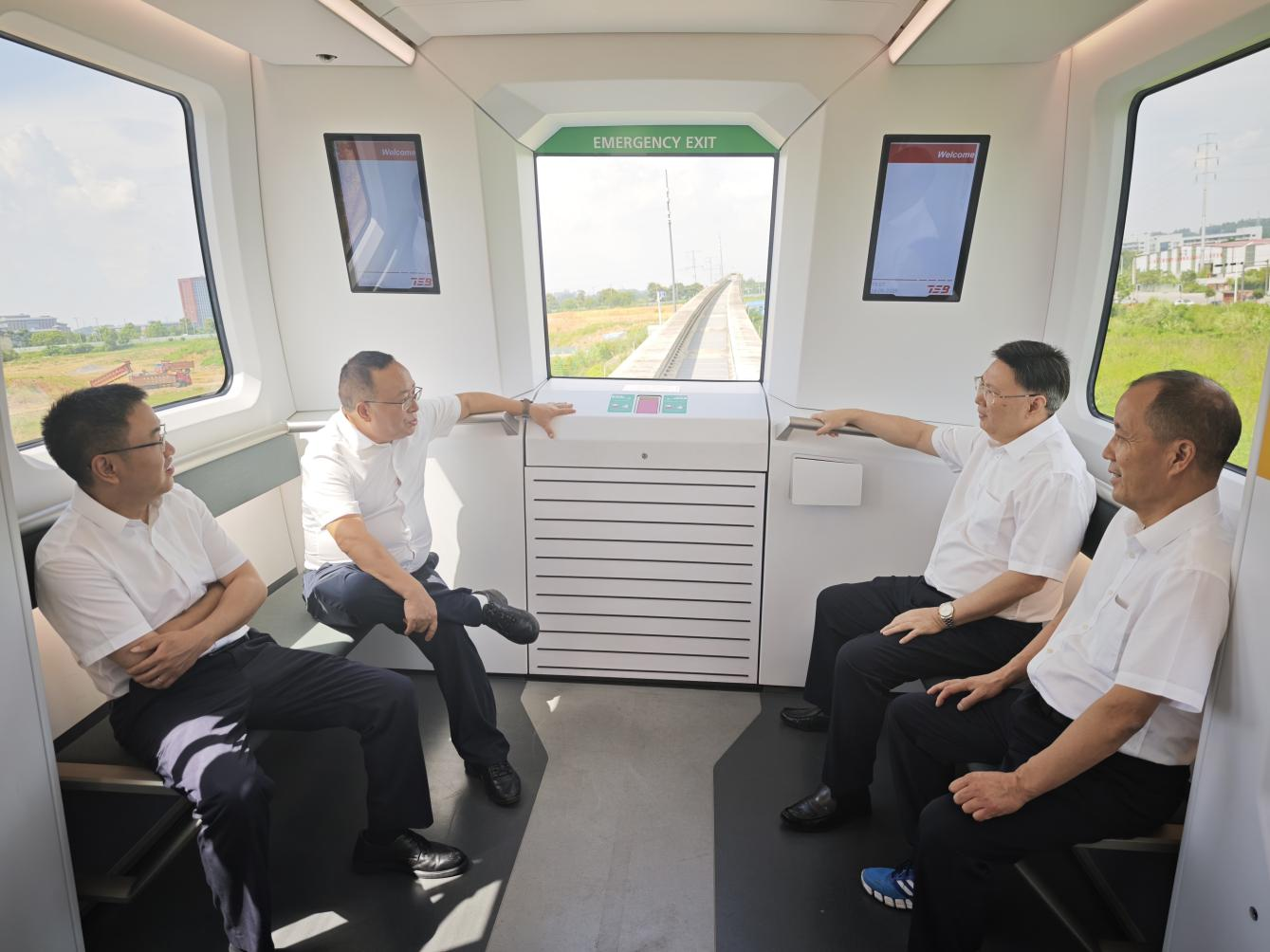 隨后,丁應(yīng)虎副書記一行來(lái)到新筑股份磁浮綜合試驗(yàn)線基地,試乘體驗(yàn)了三編組內(nèi)嵌式中低速磁浮列車。