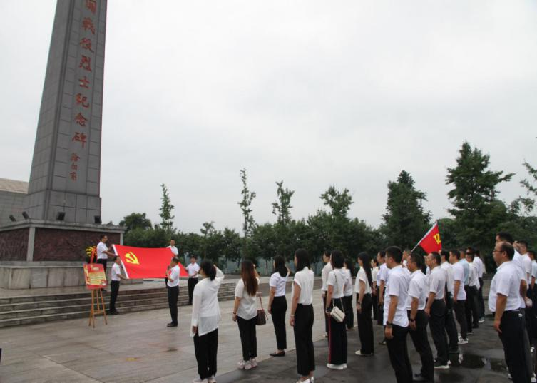 活動(dòng)伊始,在烈士紀(jì)念碑前向革命先烈敬獻(xiàn)花籃,公司黨委副書記、總經(jīng)理夏玉龍上前仔細(xì)整理花籃緞帶,隨后大家集體默哀,以此表達(dá)對(duì)先烈的深切緬懷與崇高敬意。緊接著,在鮮紅的黨旗前,由夏玉龍副書記領(lǐng)誓,全體黨員高舉右拳,莊嚴(yán)宣誓,鏗鏘有力的誓言彰顯了大家為共產(chǎn)主義事業(yè)奮斗終身的堅(jiān)定決心。